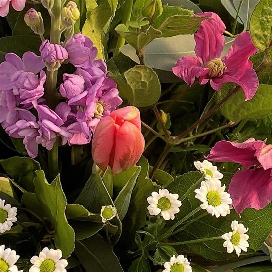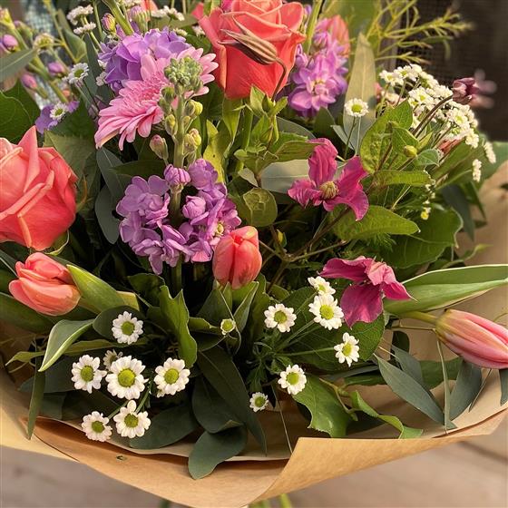 Please note that we hand make every bouquet to order, no two are the same - no production lines here, just real florists creating unique arrangements. The Seasonal availability of flowers means it may be necessary to vary individual stems from those shown. Our skilled florists may substitute flowers for one similar in style, quality and value. Where our designs include a sundry item like a vase or basket it may not always be possible to include the exact item as displayed. If such an occasion arises we will make every effort to replace the item with a suitable alternative.